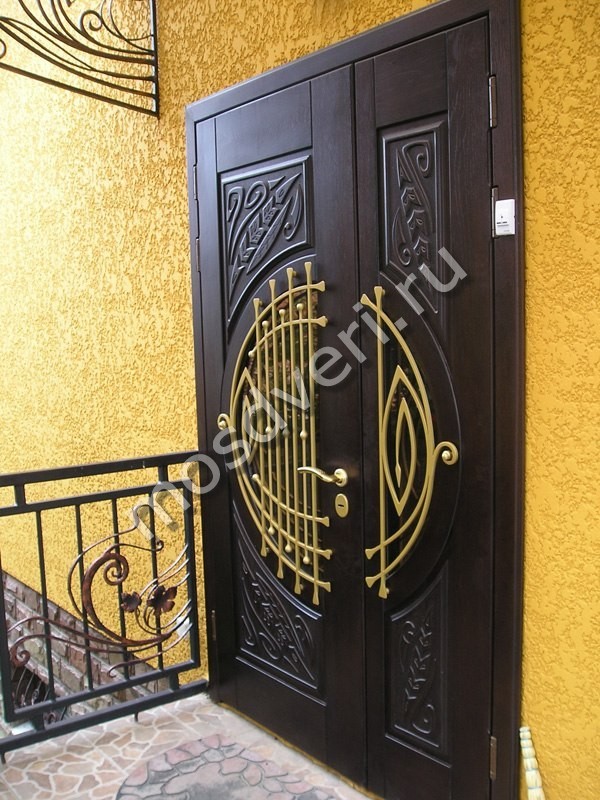 Фото установленных дверей с ковкой